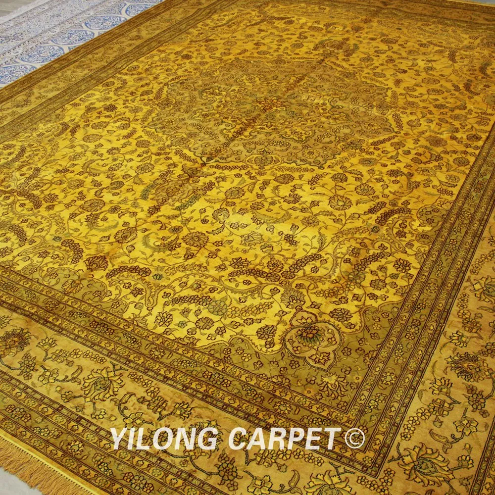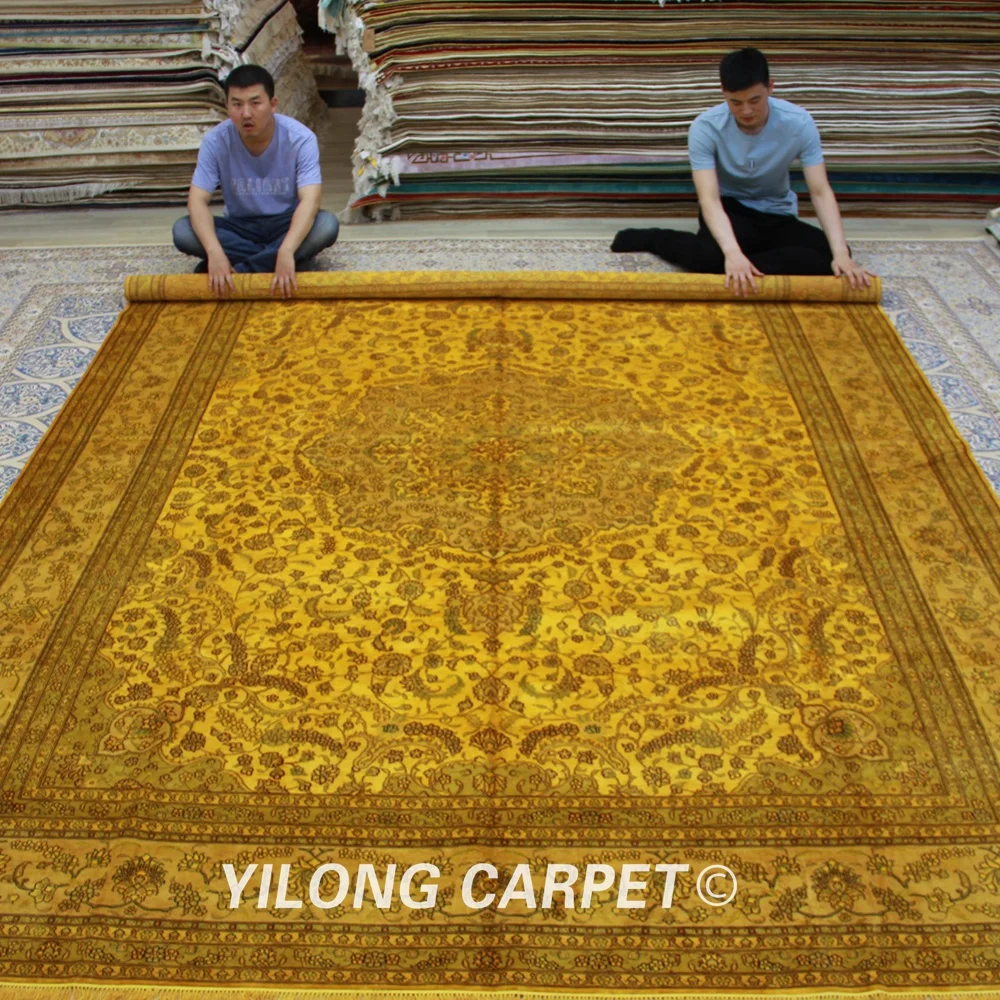 Special Offer Yilong 9'x12 'Antieke Klassieke Kleed Grote Beige Medaillon Vantage Handgemaakte Zijden Tapijt (0898) Discount 8% Today!