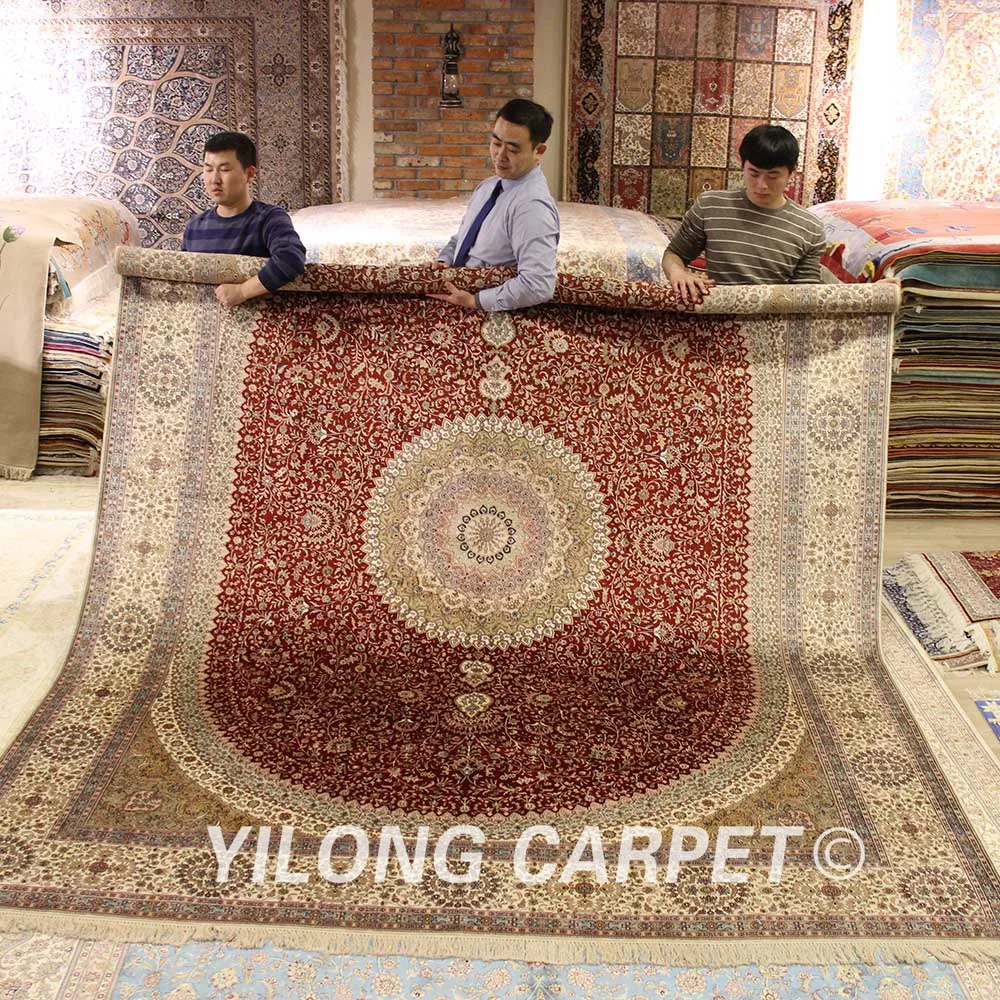 Special Offer YILONG 9'x12 'luxe Rood Medaillon Perzische Klassieke Tapijt Handgemaakte Duurzaam Parlor Zijden Tapijt (WY321A9x12) Discount 8% Today!