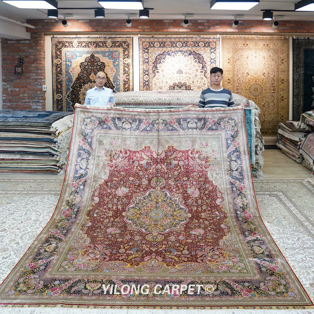 Special Offer Yilong 8 'X 10' Chinese Handgemaakte Rode Zijde Tapijt Handgeknoopt Oosterse Chinese Zijde Tapijt (TJ179A) Discount 8% Today!