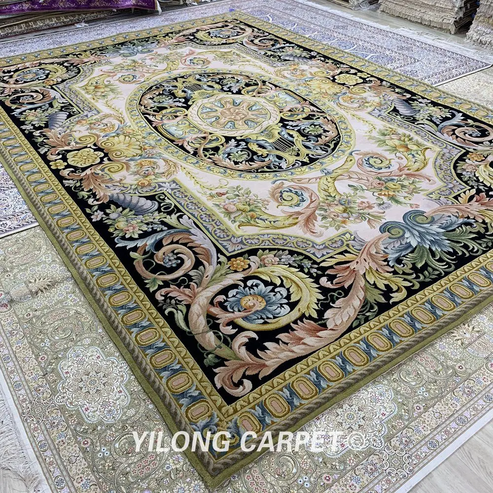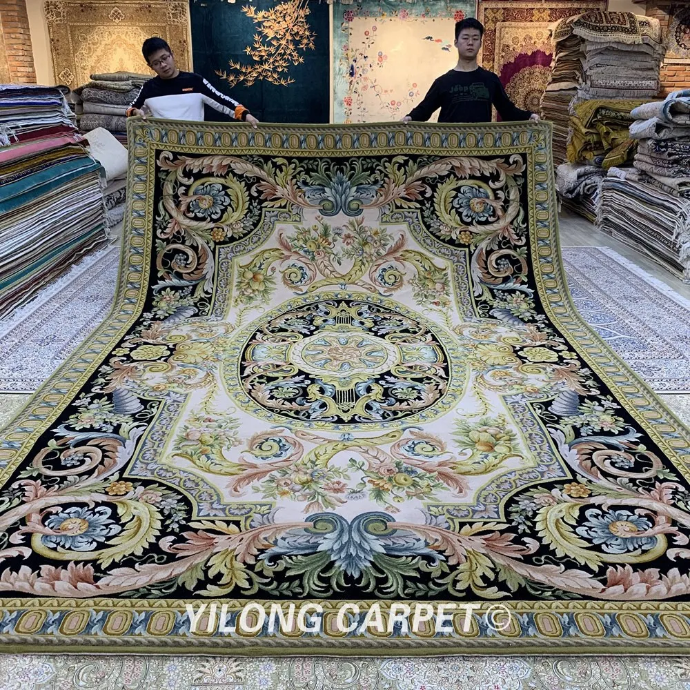 Special Offer Yilong 10'x14' Perzische Beige Handmad Wol Tapijt Savonnerie Hand Geweven Tapijt (ZSH014W) Discount 8% Today!