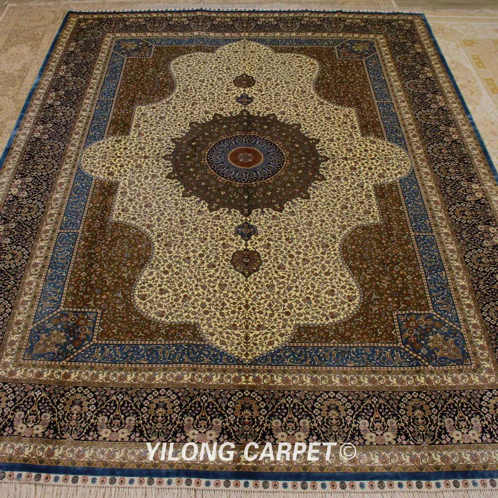 Special Offer YILONG 9'x12 'Tabriz Zijde Kleed Grote Antieke Elegante Perzische Zijde Handgeknoopt Tapijt Voor Kamer (ZQG341A) Discount 8% Today!