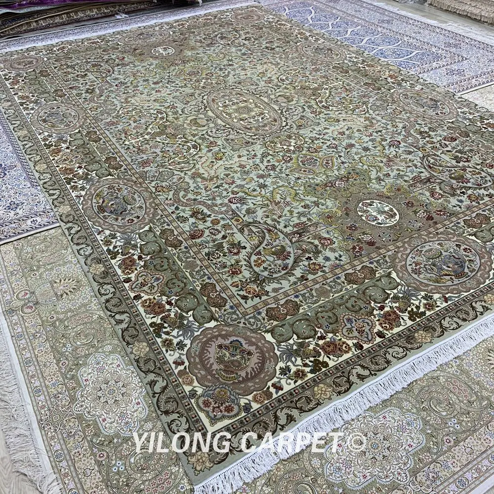 Special Offer Yilong 9.3 'x14' Perzische Wol Zijde Tapijt Beige Grote Maat Handgeknoopt Wollen Tapijt (ZSH011WS) Discount 8% Today!